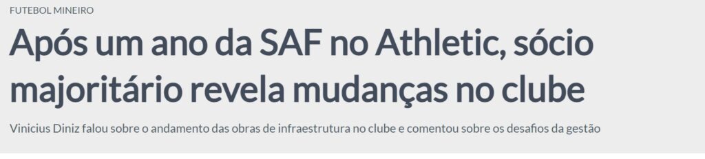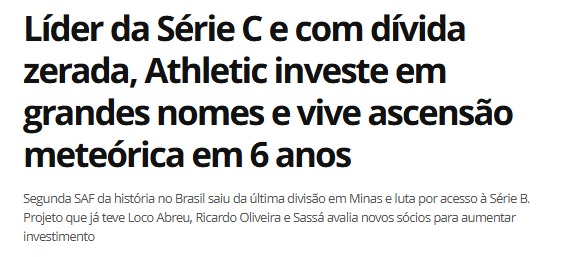 Mais do que resultados em campo, o Athletic investiu forte em estrutura: um novo centro de treinamentos, melhorias para a categoria de base e a modernização do estádio. Esse conjunto de ações estratégicas fora das quatro linhas fortaleceu o clube e o transformou em um protagonista nacional, provando que gestão profissional gera impacto real dentro e fora de campo.